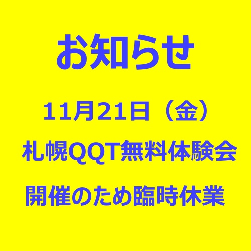 2025年11月21日(金)は、札幌QQT無料体験会開催につき臨時休業とさせていただきます。